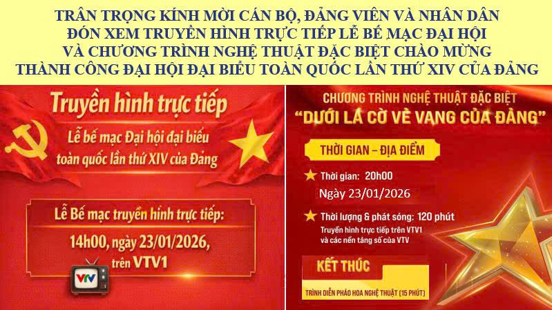 Thông báo thời gian trực tiếp lễ bế mạc và chương trình nghệ thuật đặc biệt chào mừng ĐH ĐB TQ Lần thứ XIV